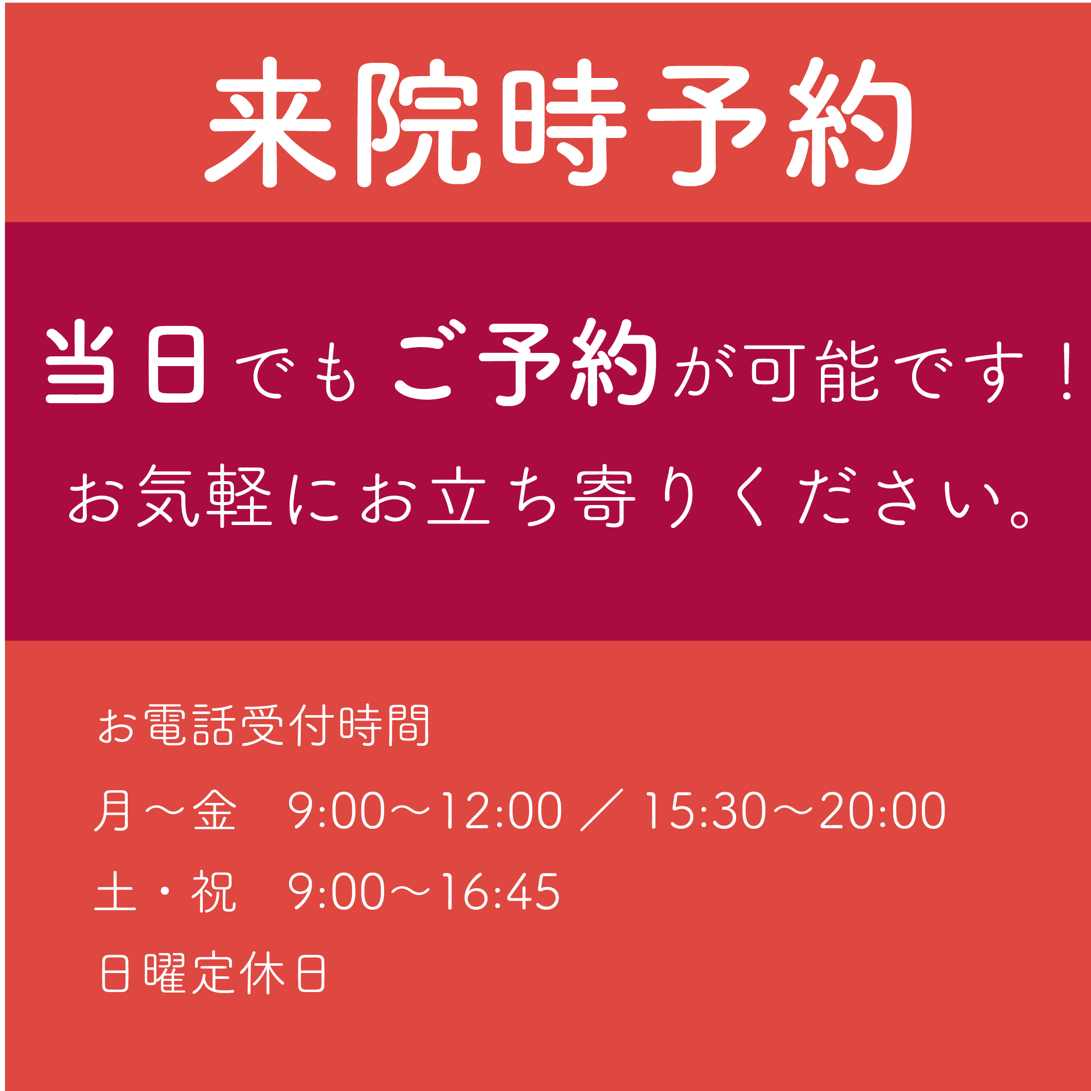 - 2026.3.01 ニュース 【3/21(土)】受付時間変更のお知らせ
